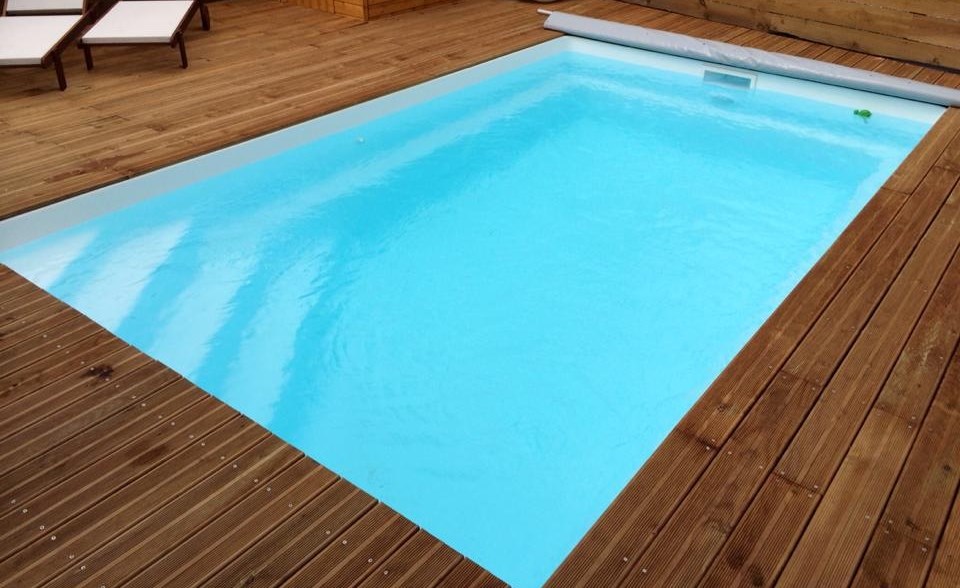 Ce modèle, avec sa forme classique rectangulaire, peut être équipé d'un volet hors sol électrique ou solaire ou de tout autre système (alarme, barrières, Bâches,...) pour optimiser votre sécurité.