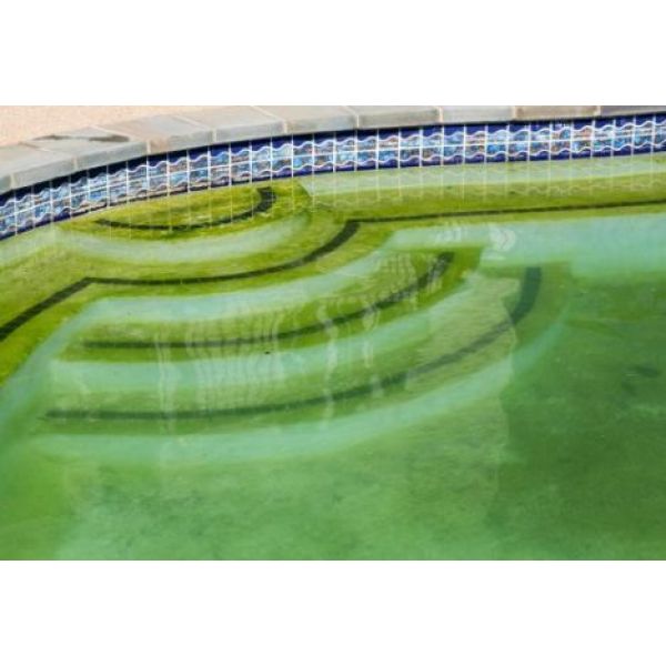 Les algues donnent à l'eau une coloration particulière (vert ou jaune le plus souvent). Les parois et le fond deviennent glissant et l'eau se trouble. Il faut savoir que les algues font appel à des produits spécifiques puisqu'elles résistent au traitement quotidien de l'eau au chlore, au brome ou oxygène actif. Les produits destinés au traitement des algues sont appelés : algicides.