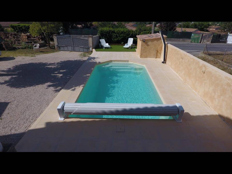 Coté "grand bain", sa forme rectangulaire (angles droits) permettra l'équipement d'un volet hors sol électrique ou solaire, système de sécurité aux normes.