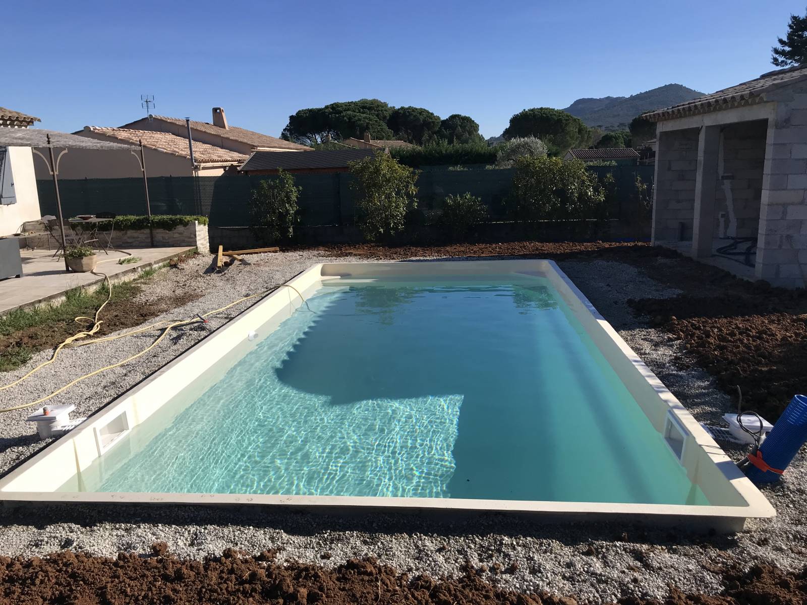 Mise en eau d'une piscine en fin de journée sur Le Muy