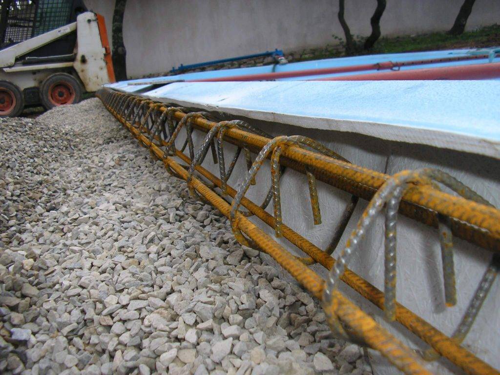 Un support respectant les consignes, permettra une pose correcte des margelles et devra être désolidarisé de toute construction périphérique. Le béton du support doit être dosé à 280kg minimum en sortie de centrale (donc 300kg en béton centrale ou 400 kg en béton fait sur un site à la bétonnière) avec une structure (minimum 20cm H x 25L), et un ferraillage centré dans le béton (coefficient de ferraillage au minimum égal à 1,57), donc utilisation de 4 tors de 8 ou de 2 tors de 10. L'utilisation d'un béton fibré peut se faire conjointement à l'utilisation des tors. Il est également possible de relier le ferraillage à la lèvre de la piscine, en perçant celle-ci et en utilisant des tors ou du fils de fer. On peut aussi procéder soit par coffrage (20cm de Hauteur x 25/30 cm de largeur depuis l'intérieur de la piscine). Bien étaler à la taloche; vibrer à la truelle ce qui assurera une homogénéité dans le support. Un béton "sec" peut être également utiliser et façonner le support à l'aide de 2 taloches (se servir du bord intérieur de la lèvre comme point de référence)
