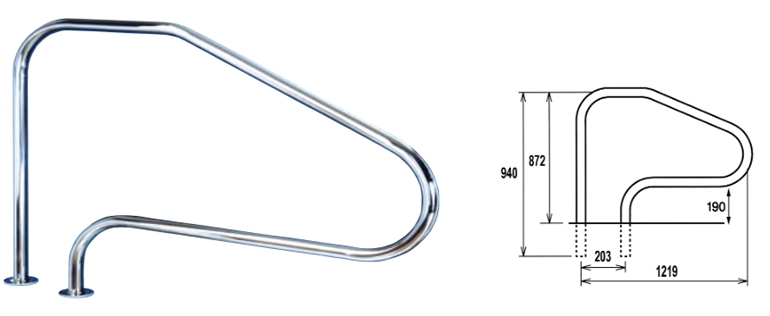 Cette main courante s'installe sur les escaliers intérieurs dans une piscine, mais aussi pour compléter les éléments inférieurs d'échelle (type échelle pour volet).