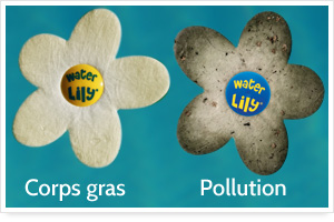 L'absorbant de corps gras permettra une épuration de l'eau en surface. Lors de la baignade les corps gars tel que les crèmes solaires, huiles corporelles, parfums sont en suspension dans l'eau et seront absorbés par la fleur WATER LILY. Elle protègera la ligne d'eau, en la disposant à la surface de l'eau dans le skimmer