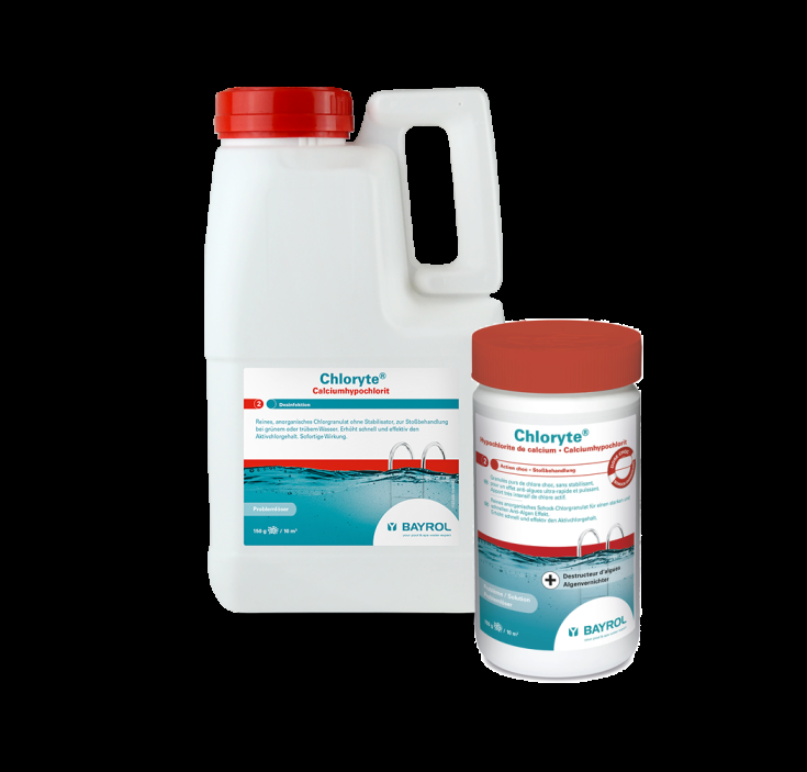 Chloryte® est composé de granulés purs d'hypochlorite de calcium. Ce chlore choc agit en traitement curatif pour éradiquer rapidement les problèmes d'eau.